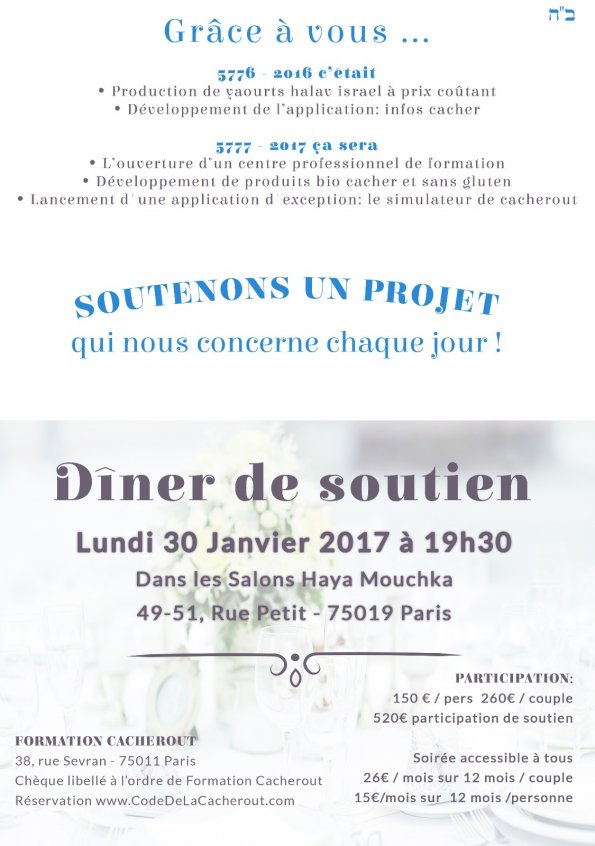 RDV LE LUNDI 30 JANVIER 2017 A BETH HAYA MOUCHKA A 19H30