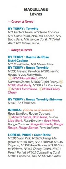 Nous vous rappelons qu'il est primordial de consulter la liste des produits cacher du BDP pour l'achat de cosmétique comme le rouge à lèvres qui est majoritairement fait avec de la graisse de porc transformé en gélatine s'il ne sont pas autorisés par la liste.