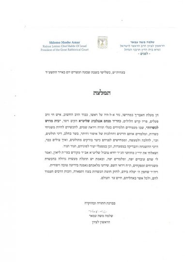 GRAND RABBIN D’ISRAËL RAV CHELOMO AMAR
